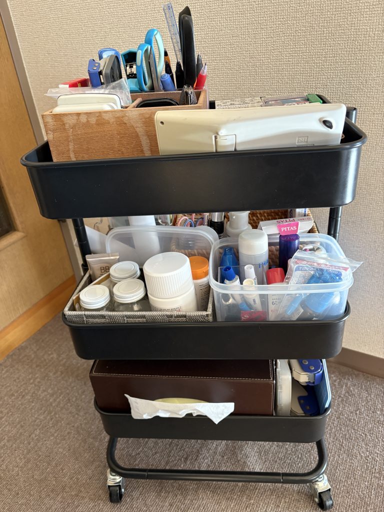 ワゴンには最初はライスのパック等食材を詰められていたため重宝とは思わなかったが、文具、薬、ティッシュ等頻繁に使う物をワゴン1か所にまとめてみたら予想以上に便利だった。